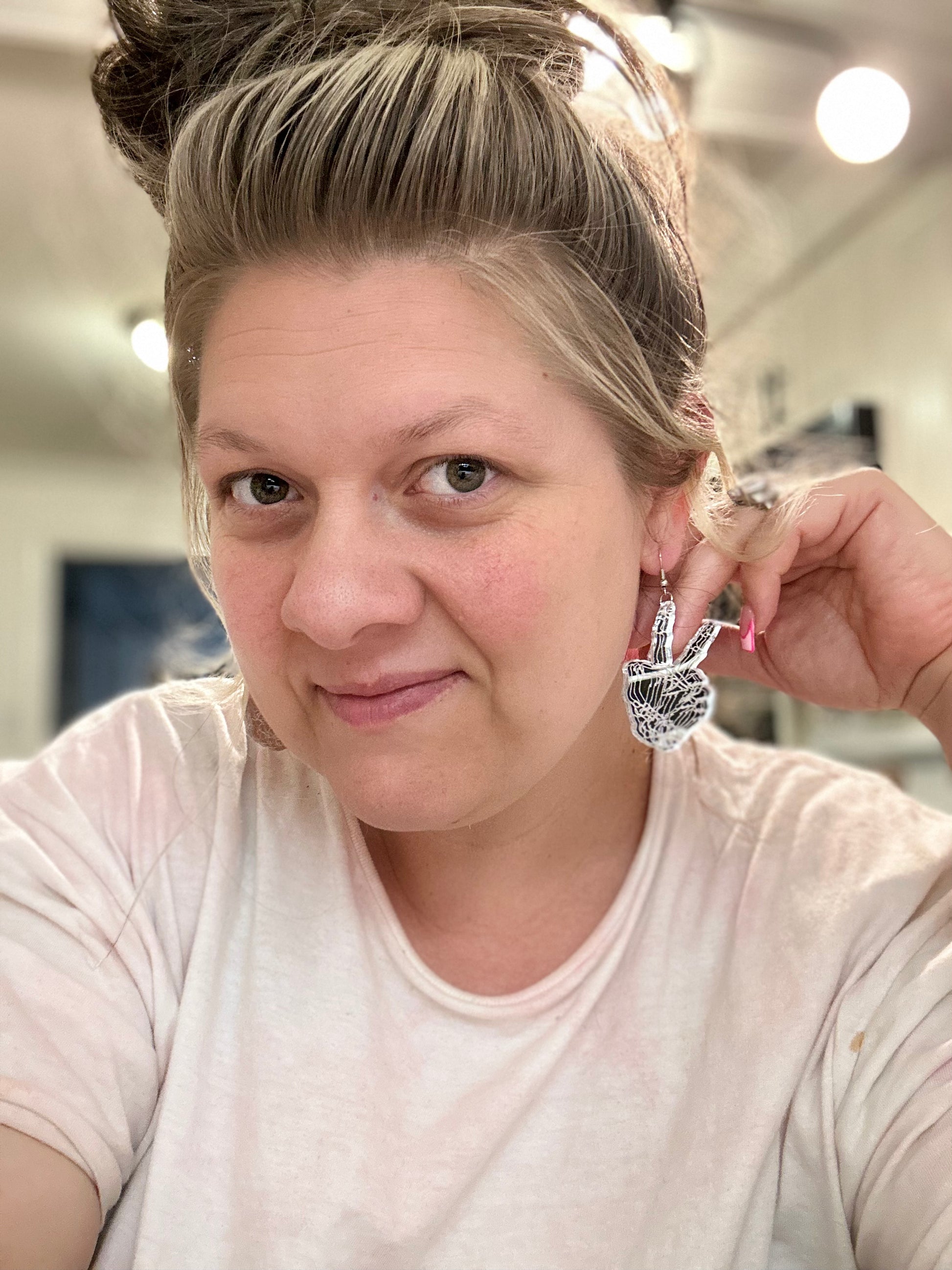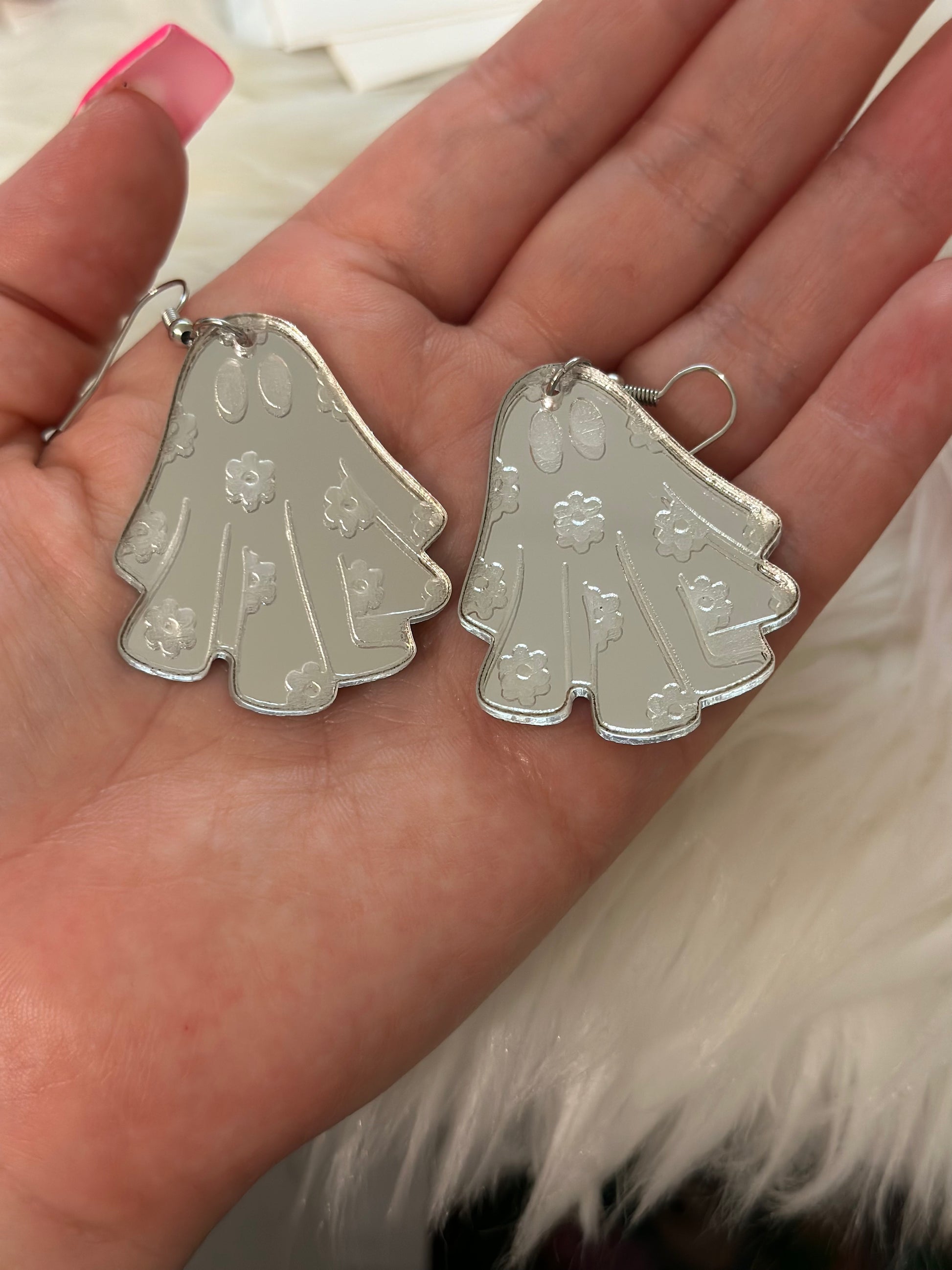 These cute little earrings are laser cut and engraved out of mirrored acrylic.